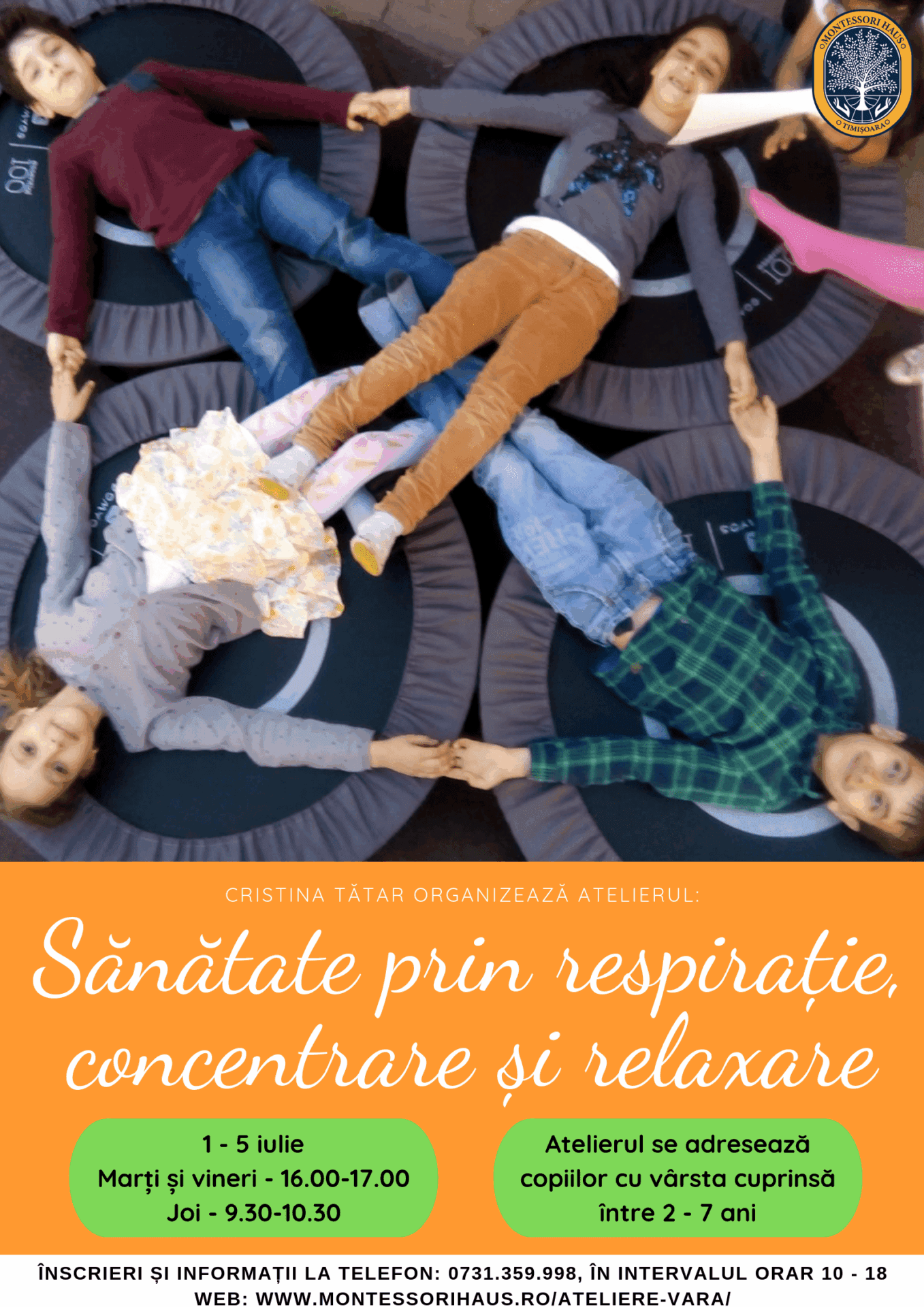 MONTESSORI HAUS TIMIȘOARA Organizează în perioada 1 iulie – 2 august, între orele 9.00 – 17.00, ATELIERELE DE VARĂ Învităm toți copiii din Timișoara să ia parte la activitățile noastre creative, artistice, sportive și de limbi străine. Creativitatea este un …